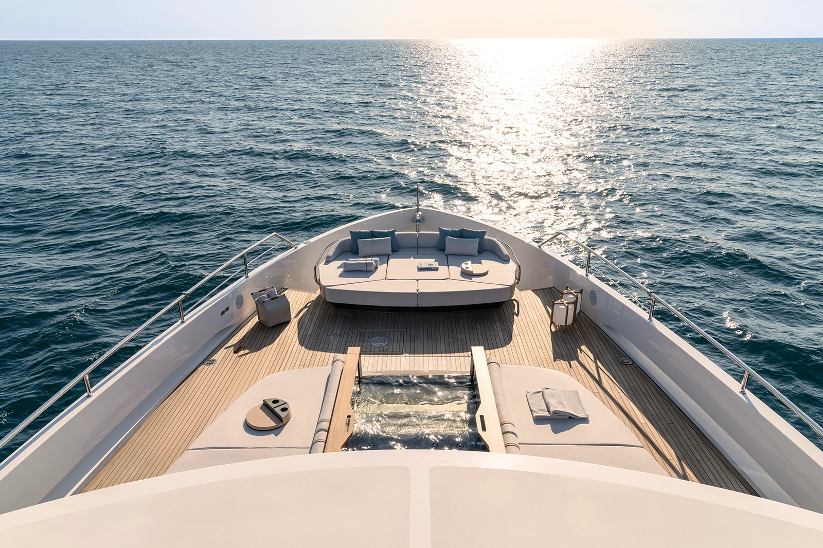 The idea of including an aft raised cockpit, for example, led to the development of new outdoor areas with unexpected concepts, functions and characteristics. The interiors are designed by Achille Salvagni, who has moved away from the traditional arrangement of on-board spaces to create an environment that reflects the lifestyle of today’s owner who is seeking versatility, informality and somewhere they can truly relax and entertain guests in comfort. On that note, there is also an option of a sixth cabin on the upper deck. Finally, the water lines are by Pierluigi Ausonio’s firm P.l.a.n.a., with a D2P® Displacement to Planing hull designed together with the Azimut Research and Development centre guaranteeing maximum efficiency at all speeds.