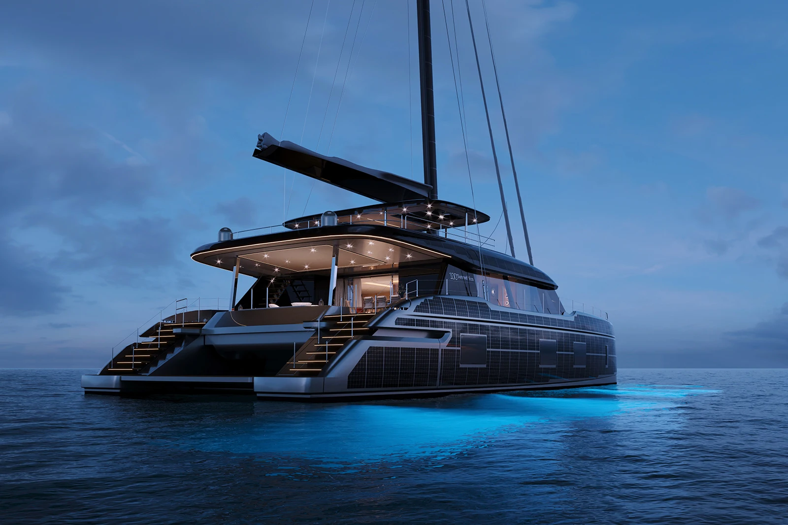 Sunreef 100 je vizionarski jedrilica katamaran, pažljivo dizajniran da pruži potpuno krstarenje bez emisija u potpunoj tišini. Na čelu inovacija u održivom jahtingu, koristi vlasničke zelene tehnologije kompanije Sunreef Yachts, uključujući kompozitno integrisane solarne panele koji pokrivaju velike površine, optimizujući proizvodnju obnovljive energije na brodu.